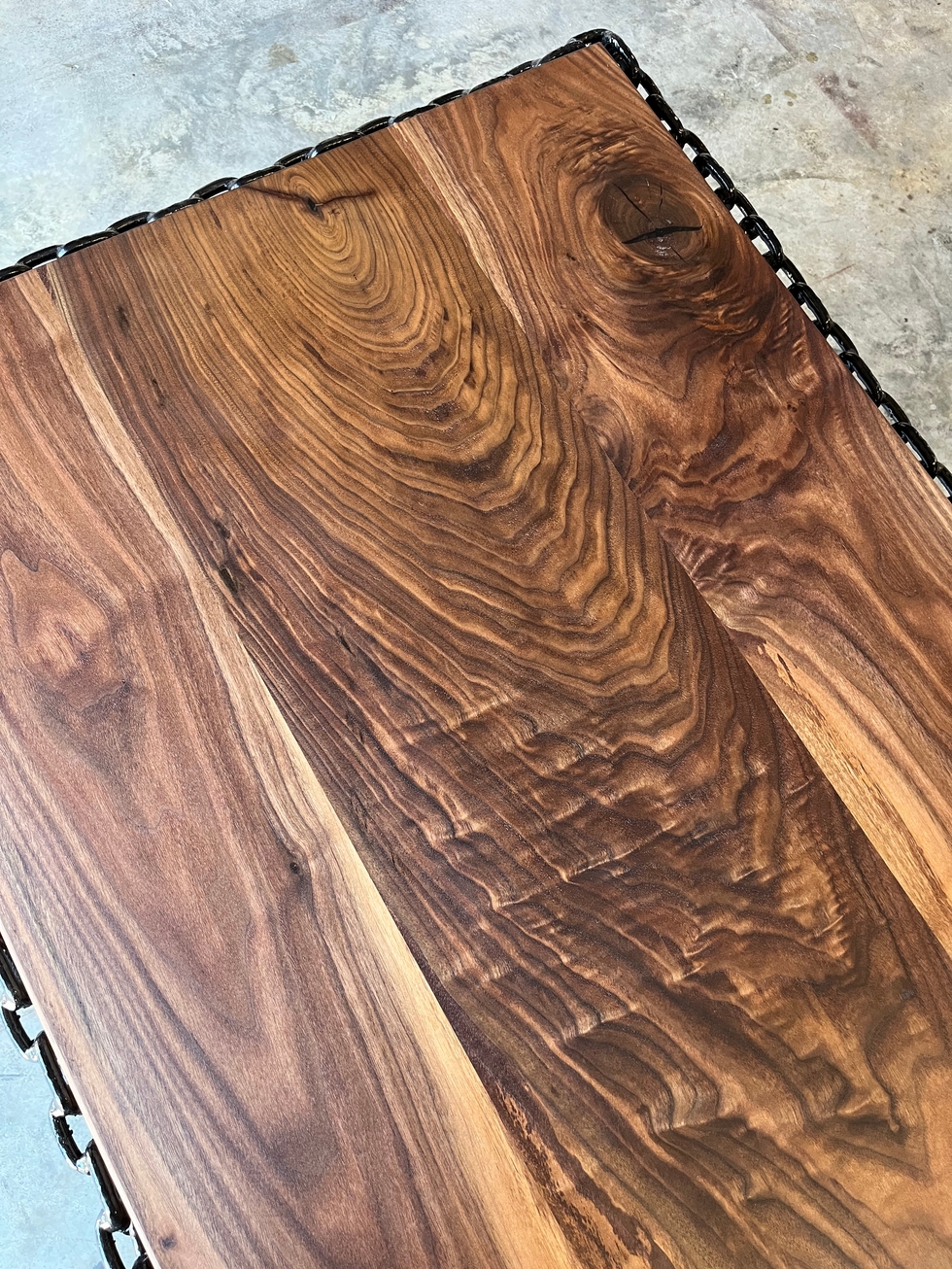 In October of 2024, we collaborated with none other than Walrath Welding out of Surf City, NC to create this amazing chainlink table together. Owner of Walrath Welding, Jeremiah, created the base of the table with his welding skills. Jason brought his expertise to create the walnut table top, and the results are stunning. This table is headed to a tattoo shop in Surf City, and we can't wait to see it in it's new space!
